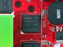显存方面,铭瑄 极光6800GS悍马版搭配了mBGA封装的2.8ns DDR显存颗粒,它属于DDR里面的高速版本,8颗组成128MB/256BIT显存规格,默认频率为700MHz。虽然DDR显存的运行频率只有700MHz,但是凭借Geforce 6800系列显卡拥有的256Bit显存位宽优势,显存带宽也达到22.4G/s,和最新的Geforce7600GT处于同一水平。
