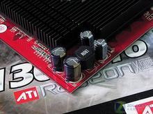昂达X1300PRO狂飚版显卡的散热器,沿用了昂达6600LE白金版上采用的散热器,导热性能良好的铝制散热片被切割成许多小块,大大增加了散热器与空气接触的横切面,可迅速带走核心和显存上的热量。