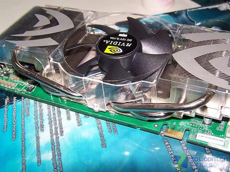 此外,显卡的散热器非常惹眼,双槽超静音超大风扇使得显卡在静音和散热间找到了很好的平衡点,保证显卡稳定工作的同时,也能很好地控制噪音。GF7900GTX的散热器采用了8厘米的散热风扇,所以可以在较低转速的情况下保持足够的出风量,高密度的金属散热片可以最大限度的保证显卡的散热效果。为了及时帮助图形核心散热,丽台使用了4根热管连接与显示核心接触的铜金属。低转速大直径风扇+高密度金属鳍片+4根热管使得显卡在工作时十分的安静。