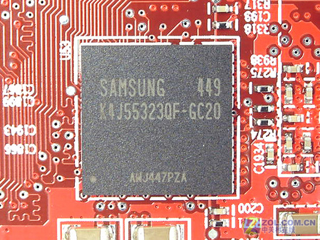 显存方面,迪兰恒进使用了三星出品的GDDR3显存颗粒,2ns的速度刚好满足1GHz运行频率的要求,显卡正反共8颗,组成256MB、256BIT。