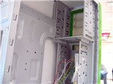 机箱侧面板采用免工具拆卸设计,卸下侧面板后,我们可以看到,其内部空间还是很大的,可兼容各种大小的主板。在牢固性方面,该款机箱得意于其所采用的连体式磁架,牢固性也发挥的不错。
