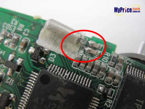 另外一处隐患是液晶屏的固定方式,近距离观察发现液晶屏与其所在的电路板是采用胶水粘在一起,“这种处理方式是纽曼产品质量的又一大隐患。如果天气炎热,胶水松动,液晶屏就容易移位,那么与其他元器件的连接就会表现得不稳定。“而且王先生认为胶水粘连的质量也过于粗糙了。