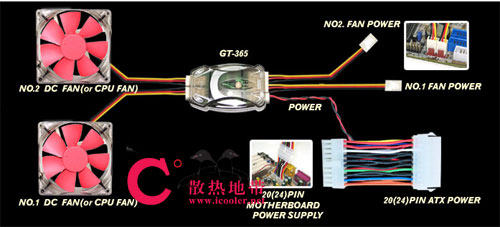 我们说的就是劲冷家族的新品GT-365延时散热装置。一般地,在电脑运转的情况下,我们可以发现,我们配置的风冷散热器,会将元件产生的热量从散热器的底座进行吸收,然后传递到鳍片,接着通过风扇产生的风力将热量带走,通过这个程序,散热器就能让发热的元件维持在合适的温度而运作。然而,当我们关掉电源时,散热风扇的电力就被切断后,风扇会在很短的时间内就停止了转动了。同时间,我们的处理器,显卡等发热元件其实仍然会保持着一定的温度,不会马上就冷却的。由于失去了风冷的支援,这些余热就只能慢慢的通过自然传导和对流来散发了。但是,这个余热问题如果长久下来还是会对电子元件造成明显的损害。所以,我们有必要来处理这个问题。