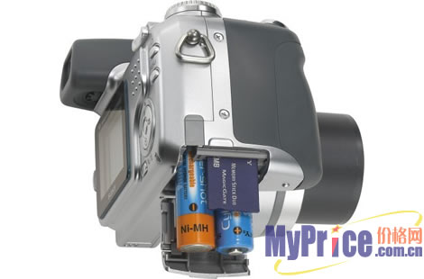 这款相机内置了32MB的内存,可以用过DUO记忆棒扩展,最高支持4GB的容量,使用两节5号电池供电,一次能够连续拍摄400张照片。它的机身大小为113.2×94×83mm,重389g。