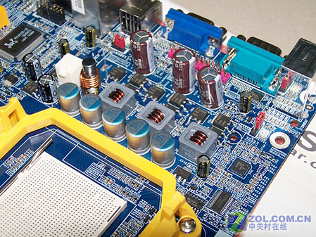 映泰TForce6100-AM2主板供电模块采用三相供电回路设计,搭配封闭式电感和大量高品质固体聚合物电容。