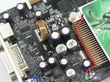 铭?这款极光7300GT钻石版使用了和Geforce 7600GS一样的PCB,采用非公版加强型设计。显卡搭配了英飞凌2.8ns GDDR2显存颗粒,8颗组成256MB、128显存规格。虽然该卡核心/显存默认频率,仅为官方标准的350MHz/700MHz,但实际性能却非常不俗,默认频率下3DMark03测试得分过7000。