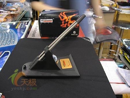 线夹的底座为硬塑料制成,而夹线部分则是不锈钢弹簧,这样的设计可以使用户方便的调节鼠标线的角度。
