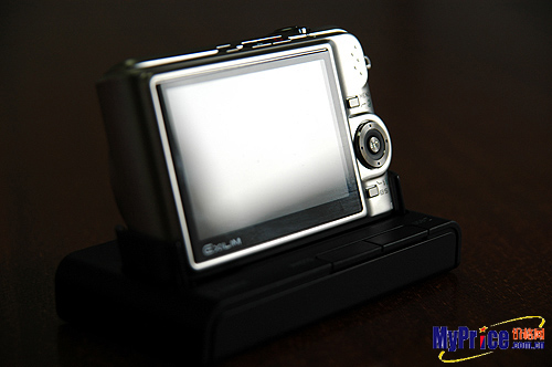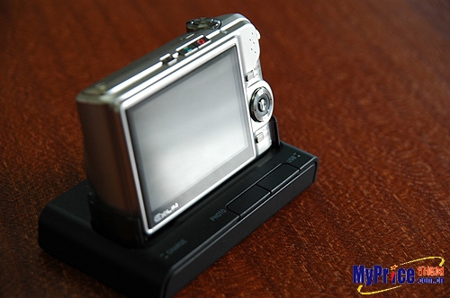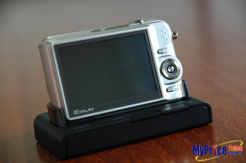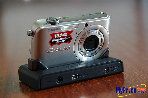 卡西欧Z1000和前几代卡片机的设计相同,同样是带有一个底座,这个底座起到了充电和数据传输的作用。在最新的几代卡西欧数码相机上都陆续开始支持视频Video输出,也就是拿AV线与电视相连,像照片和视频文件都可以直接拿电视观看。