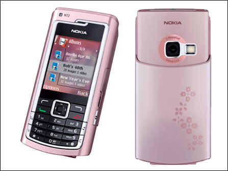 和前作N70以科技、功能做为重点的宣传方式不同,N72是以时尚作为突出卖点。N72目前有珠光粉和黑色两种颜色可选,此外背盖上还有数字纹路图案,除了突出个人特质外,更点缀出时尚智能型手机的魅力。同时为了搭配手机背盖,耳机也配合设计了时尚花纹,为平淡无时的普通耳机成功创造新的话题。由此可见诺基亚的设计理念是相当超前的。