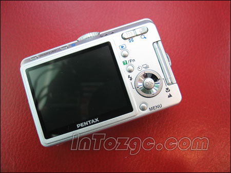 机身背部,本机配备了一块2.5英寸、11万像素的液晶显示屏,取景构图比较方便。另外,屏幕右侧的按键设置与排部也与宾得S55完全一致,没有任何区别。