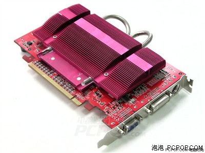 双敏PCX6618GT冰翼版采用了6层的红色PCB板设计,整体的做工和用料都不错。最显眼的是采用这套双热管散热设备,正面散热片造型非常独特。核心方面采用6600GT的核心,运行频率为500Mhz,作为一款面向于千元价位的显卡,6600GT是NVIDIA近年来最成功的产品,与ATI的相同档次显卡相比起来,支持Sharder Model3.0是其最大的优点。
