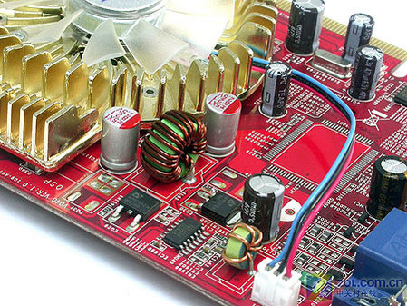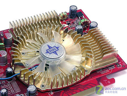 供电部分,显卡采用了核心/显存独立供电,并使用了高品质的铝壳电解电容,能为显卡提供更纯净的电流。散热方面,微星采用了经典的太阳花型一体式散热器,在给核心降温的同时很好地照顾了显存的散热。显卡的风扇有11个叶片,运行时的转速不快,但由于其风量大,散热效果十分出色。