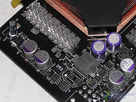 供电部分的用料是该卡的最大特色,电路中使用了大量高品质三洋贴片固态电容,保证了显卡运行的稳定性。而且细心的朋友可以发现,该卡还使用了一颗高档的黄色钽电容,这在6600GT显卡之中是十分少见的。