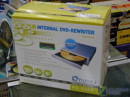 推荐理由:作为18X DVD刻录机,其不但突破了16X DVD+/-R极限,还将DVD+R DL首次提升至10X,相信这样的性能参数对于浦科特FANS们有着很大的吸引力。虽然目前盘片还没有达到相同速度,但喜欢超刻的朋友应该不会放过这款PX-760A。