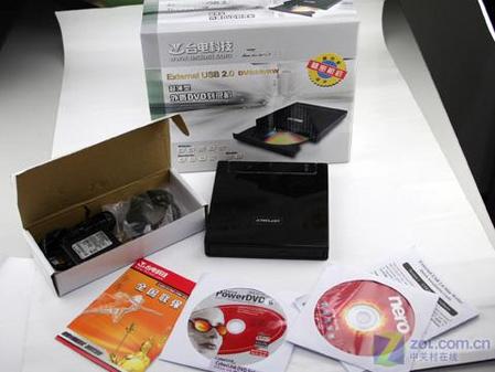 机身厚度仅21毫米,放在笔记本包里随身携带非常方便。背部接口处提供了USB2.0高速传输。同时附件提供了USB线、电源线、说明书、Nero和PowerDVD软件。