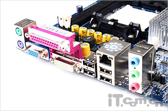 板载DVI和VGA接口是N61GT的一大特色,DVI接口对目前高分辨率和宽屏LCD能实现更好的支持和带来更细腻的显示效果,两个接口也能够实现nVIEW功能实现双显示。另外其他常用接口也非常齐备,板载有4个USB2.0接口等。