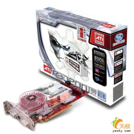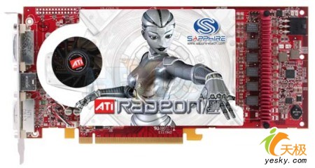蓝宝石X1800XT黄金版选用R520核心,核心内置16条渲染管线,10个顶点着色引擎,核心频率625MHz。显存采用1.26ns GDDR3颗粒,组成256MB/256bit规格,默认频率1500MHz。图形输出端口采用双DVD-I端口,和1个VIVO视频接口,可满足HDTV的视频输出需求。