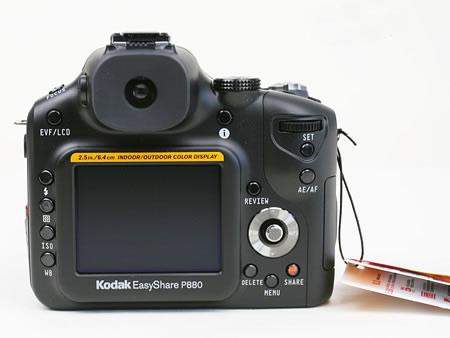 柯达P880的液晶显示屏的配置与前几日降价P850一样,都是2.5英寸的液晶显示屏,分辨率同为11.5万象素;而EVF电子取景器的分辨率同为23.5万象素。此外,P880的机身尺寸为115*80*60mm,不含电池重约500g。其使用SD/MMC卡为扩充存储介质,电源方面则使用1800毫安锂电池设计。