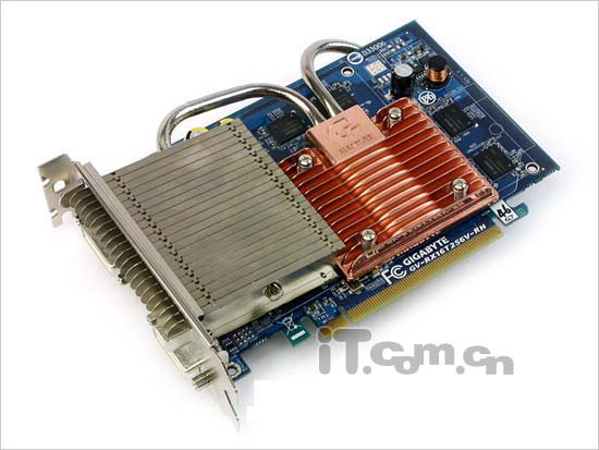 这款显卡同样采用RV530核心,显卡选用四颗英飞凌1.4ns GDDR3显存颗粒,组成256MB/128bit的显存规格。其默认显存/核心频率高达560/1400MHz。显卡在散热方面采用Silent-Pipe II技术,这一技术巧妙利用系统内外压力差造成的对流来散热,它在显卡的挡板处开了一个导风口,空气流入,冷却铝鳍散热片,并降低核心散热片、显存颗粒及显卡上的供电模块上的温度,散热效果极佳。