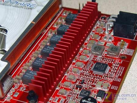 蓝宝X1900GT的官方默认频率为575/1200MHz,配备了Samsubg-1.4ns GDDR3 256MB 256Bit显存,仍然拥有极大的超频空间。同时512BIT环型显存的优秀架构有效的节约了显存带宽,从而提升显存利用率,使得在高负荷的时候显卡的表现非常的优异。在原料和PCB上直接使用了顶级王者X1900XTX的PCB只供电模块稍作由7相精减一相到6相,散热器则使用了更节省空间的高效单槽散热。
