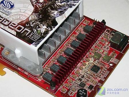 蓝宝石X1900XTX的供电部分,散热片和6针电源接口都是“标配”。对于那些使用转接线连接PC电源的用户而言,我们建议您将转接线的两个D型插头分别连接到PC电源的两路输出上(也就是说分别插在电源的两根线上,而不要插在一根线上的两个D型插头上),以为显卡提供充足的电力供应。