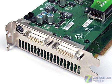 接口方面,显卡采用了具有高端显卡特色的双DVI+S-Video接口的组合方式 ,支持PureVideo视频技术和HDTV。由于显卡是双槽设计,显卡需要占用一个PCI插槽的间距。