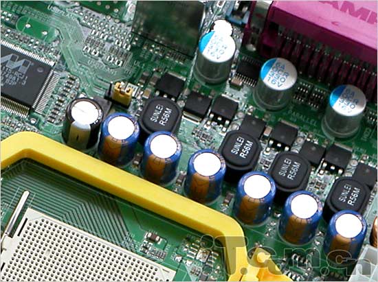 该主板采用四相供电系统设计,四个全封闭式陶瓷电感与2个MOFSET管搭配,配合大量高品质全固态电容,保证了AM2处理器的稳定工作。