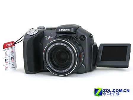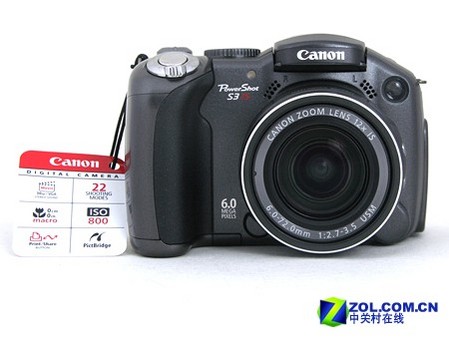 具体性能:佳能S3 IS采用一块1/2.5英寸的600万像素CCD,最大分辨率为2816×2112。使用焦距等效于传统35mm相机的36-432mm、最大光圈为F2.7-F3.5的12倍光学变焦佳能镜头。ISO为 80/100/200/400/800。快门为15 - 1/3200 秒,并且拥有一个显示像素为11.5万的2.0英寸的液晶显示屏和一个电子取景器(EVF)。使用SD卡,随机附带16MB。电池系统使用4节5号AA电池。佳能S3 IS机身重量约410克,外型尺寸是:113.4×78×75.5 mm。佳能S3 IS具有程序自动曝光、光圈优先、快门优先以及全手动等曝光模式,具有手动调节ISO感光度以及自定义白平衡的功能。