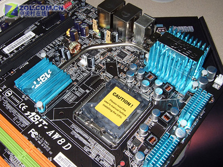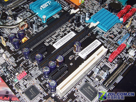 升技AW8D主板提供2个PCI-E总线显卡插槽,支持ATI交叉火力。搭配大量高品质红宝石滤波电容。