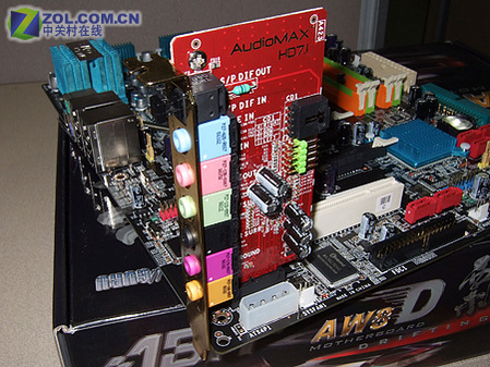 升技AW8D音频输出由AUDIOMAX7.1声卡提供,采用PCI-E X1接口设计。