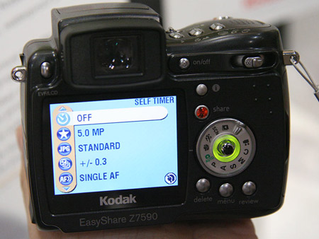 Z7590提供了一块 2.2英寸的 LCD显示屏,具有15.3万像素,内置32MB闪存,其连续自动对焦速度为0.2秒,采用锂离子电池供电,SD/MMC存储卡。 外型尺寸是:99.6 × 79.9 × 81.2mm,不含电池和存储卡:机身重量约350克。