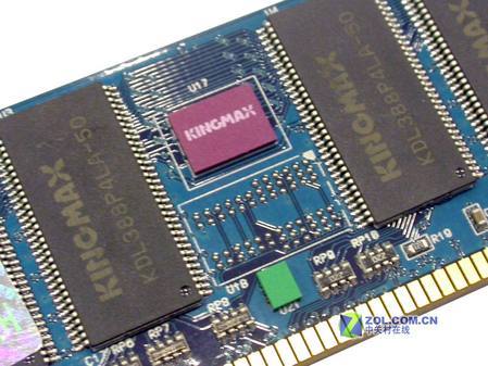 产品采用标有“KINGMAX”字样的内存颗粒,编号为KDL388P4LA-50,规格为32MBx8bit,颗粒工作响应时间为5NS。