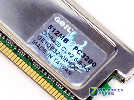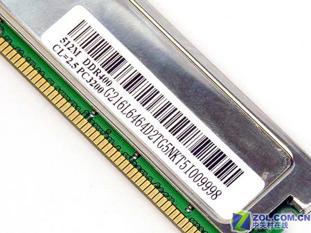 产品容量为512MB,工作频率为DDR400,时序参数为2.5-3-3-6,产品编号为G216L6464D2TG5NKT5I009998。可稳定运行于DDR500(时序参数为3-3-3-6),此工作电压为2.6V,内存颗粒采用32MBx8bit规格,针脚数为184PIN。