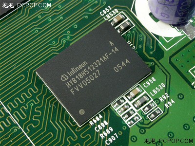 显存方面,权杖7300GT 256MB GD3采用了英飞凌1.4ns GDDR3显存颗粒,整体规格为256MB/128Bit。默认核心/显存频率为560/1200MHz,由于1.4ns显存频率默认频率在1400MHz,因此这款产品的显存应当还有较大的超频提升空间。