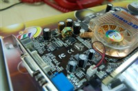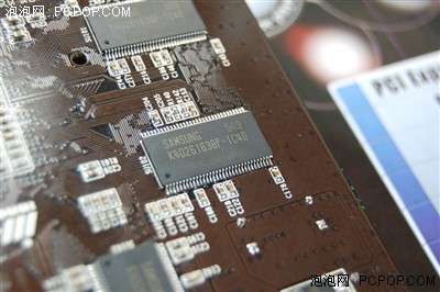 显存方面使用的是现代4ns DDR的显存,共8颗同组成了128MB/128bit的规格,由于显存速度较低,显存频率只有500MHz,但是作为一款入门级的显卡来说已经足够用了。