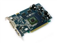 这款显卡采用GDDR3显存,速度为主流规格为1.4ns,为7300GT搭配如此高频的显存性能自然十分强劲,但256MB显存的成本太高,所以这款显卡只有128MB。