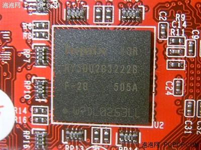 在显存方面,双敏火旋风PCX8018GTO采用mBGA封装的现代2.8ns DDR显存颗粒,双面八颗设计,组成128MB/256Bit的空间架构。其默认频率为400MHz/700MHz。