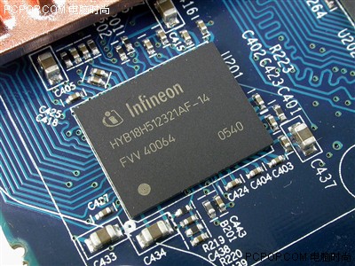 显存方面搭载了英飞凌1.4ns GDDR3颗粒,256MB/128bit显存规格,默认频率高达560/1400MHz。新一代ATI Radeon X1600XT已不需要采用合成引擎,就能透过PCI-E的高带宽达成CrossFire技术,因此用户只需要选购两片X1600XT就能享受交火的威力。