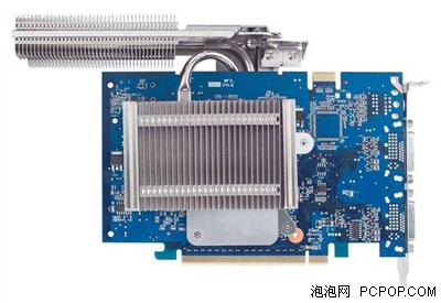 华硕这款EN7600GT SILENT/2DHT/256M,最引人注目的就是采用了华硕最新的Silent Cool 2技术,使产品不但拥有更为出色的散热效能,而且能够有效避免噪音的产生。显卡正面大面积的散热片负责吸收由图形处理核心发出的热量,在散热片内部的热管负责热量的加速传递。华硕Silent Cool 2技术的一个独特之处就是放弃了传统的背面散热片散热方式,而将更多的散热片结构被放置在了显卡的顶部,由热管来负责热量的快速传递,并通过更为细密的散热鳍片将热量散发出去。