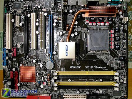 华硕P5B Deluxe主板搭配热管散热模块,由一根热管贯穿北桥和MOSFET。