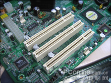 主板仅具备两条内存插槽和三条PCI接口,降低了生产成本。