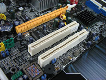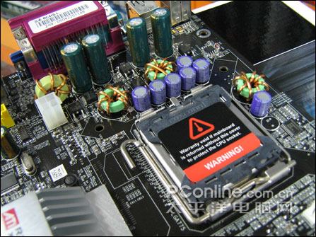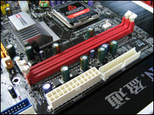 主板提供两条DIMM插槽,最大支持2GB DDR400本地内存,充分发挥Intel平台的性能优势。另外还提供了一个PCI-E×16总线显卡插槽,方便日后升级。