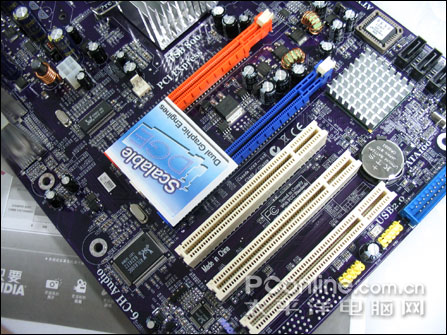 这款主板拥有一个2个PCI-E x16插槽、1个PCI-E x1插槽以及3条传统PCI插槽,提供了极大的扩展能力,支持ATI CrossFire。整合了ALC655六声道声卡与RTL8100C百兆网卡。