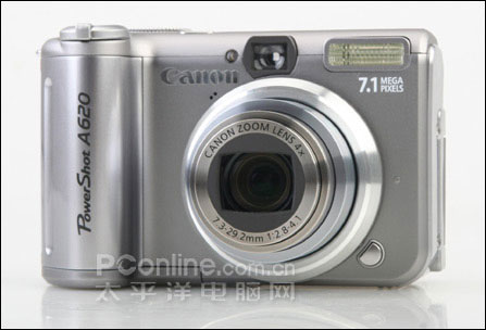采用1/1.8英寸700万有效像素的CCD,可以拍摄最大为2592x1944像素的数码照片,镜头方面,A620采用了佳能4倍光学变焦镜头,焦距范围相当于35mm相机的35-140mm,微距达到了1cm。采用11万像素2.0英寸旋转LCD液晶屏,在数据存储方面,A620舍弃了CF卡转而采用了SD与MMC的组合。供电采用4节AA电池供电模式,兼容性更好。