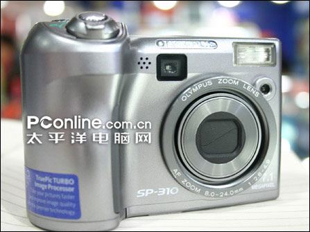 奥林巴斯SP-310的机身采用人体工学设计,手感十分不错。它使用1/1.8英寸的700万有效像素CCD传感器,3倍光学变焦、等效焦距为38-114mm、最近微距为2cm,装备2.5英寸、约11.5万像素的液晶显示屏;具备完整的P/A/S/M全手动曝光模式,支持以RAW格式存储图片,使用性能强劲的奥林巴斯TruePic TURBO图像处理器,具有最高支持到640×480 30fps的不间断短片拍摄功能;内置了25M存储空间,可使用xD卡扩充容量,以2节AA电池供电。
