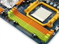 映泰TForce 550主板同样采用宽敞的蓝色PCB,基于NVIDIA公司最新nForce 550(MCP55S)芯片组,提供对AM2接口处理器的良好支持。AM2处理器内置双通道DDR2内存控制器,因此主板提供了4条DDR2内存插槽,最高支持DDR2 800规格。