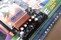 显卡采用公版7600GT版型设计,拥有12条像素管线和5组顶点处理单元。基于90nm制程的G73核心。大量高品质三洋的SVP系列固态电解电容和红宝石直立式电容紧密排列在显卡右部,用料相当不错。这款产品的散热器设计也是不错,空气由中央风扇吸入流经密集的散热片后由右边排出,达到整体散热的良好效果。