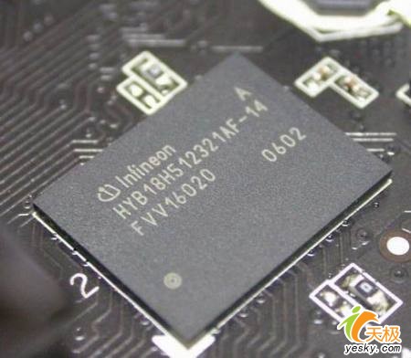 在以超频为主的显卡中,我们当然会推荐大家选用性能更好的GDDR3颗粒的显存了。不过在GDDR3的显存中也分为不同档次的产品,最主要的区分就在它们的时间延迟上,主要分为2.0ns、1.6ns、1.4ns、1.2ns几款。它们的理论运行频率依次为1000MHz、1200MHz、1400MHz、1600MHz。但是由于各种原因的存在,不少显卡厂商在其产品上采用的高速显存颗粒一般没有达到其最高理论上限,这也在一定程度上为超频爱好者提供了更多的超频空间。