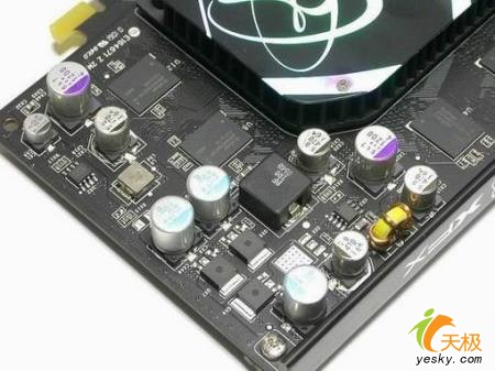 注:核心和显存供电电路采用了分离式独立供电设计,采用了大量铝质电容