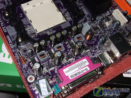 精英C51GM-M主板供电模块采用三相供电回路设计,搭配松下滤波电容。
